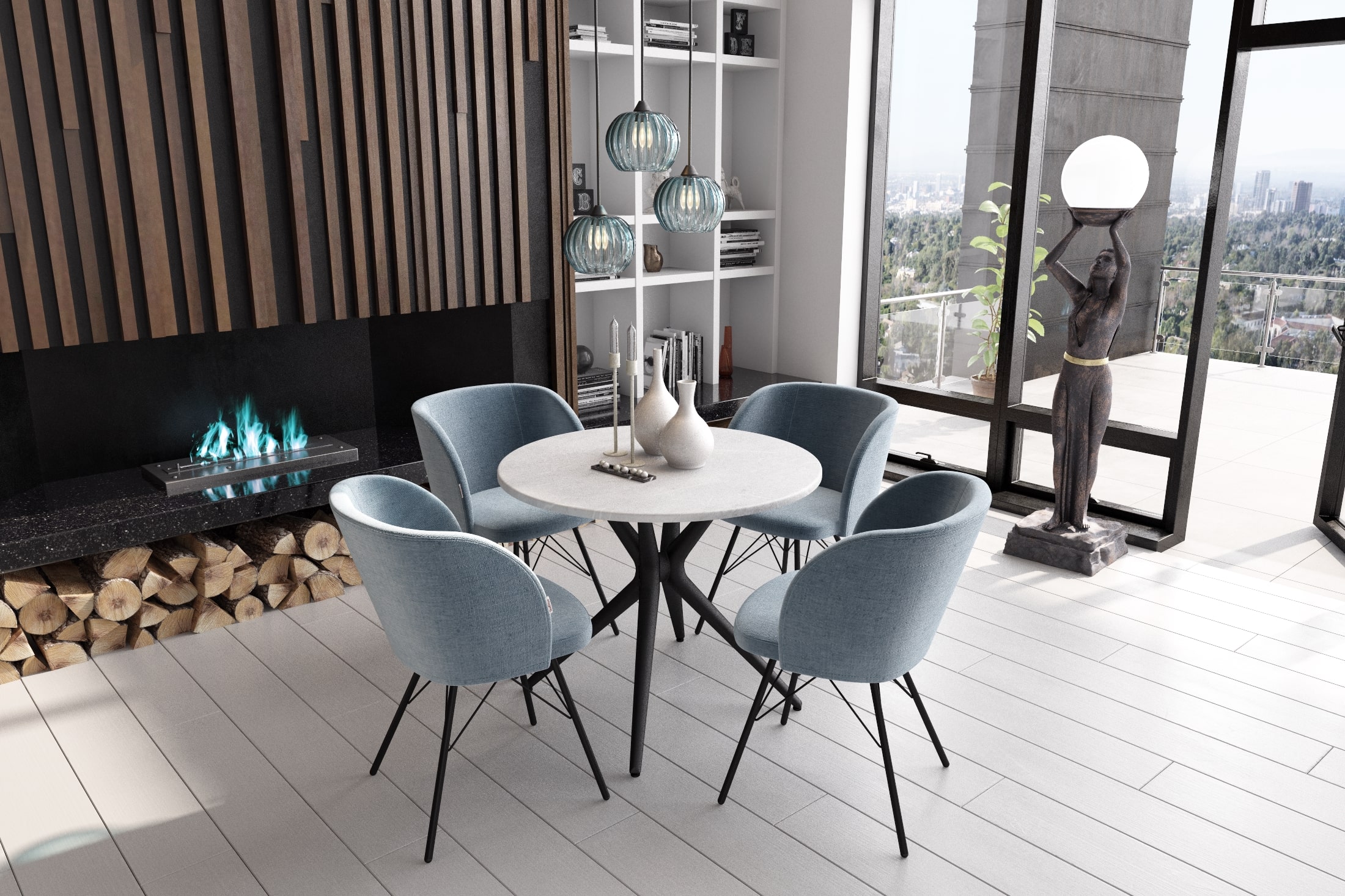 - Отделка: синий лед/черный муар