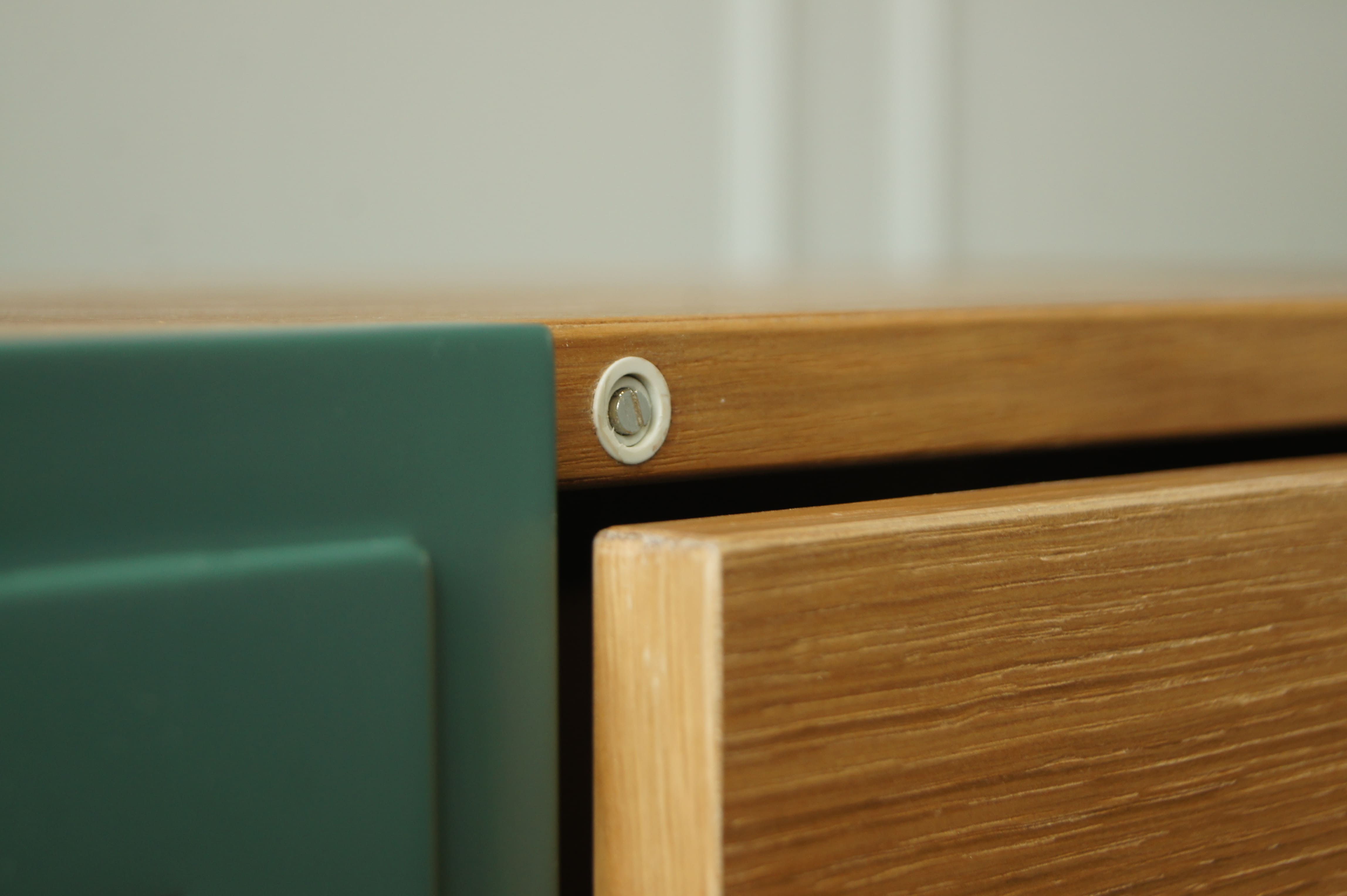 Внутреннее наполнение: 3 ящика на направляющих с доводчиками, 1 полка, 3 двери.