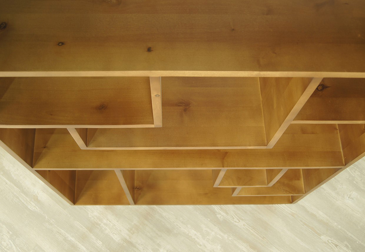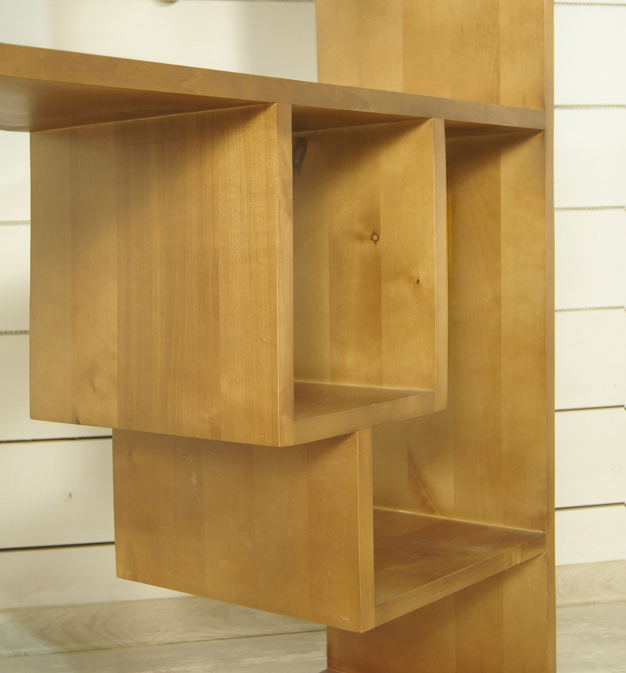 Открытый стеллаж «Aquarelle Birch» в стиле лофт сочетают минималистичный дизайн форм и богатый рисунок натурального дерева. Они изготовлены из массива березы. Необычное расположение полок позволяет оптимально организовать пространство для хранения различных предметов. Высота в 195 см удобна для большинства пользователей.