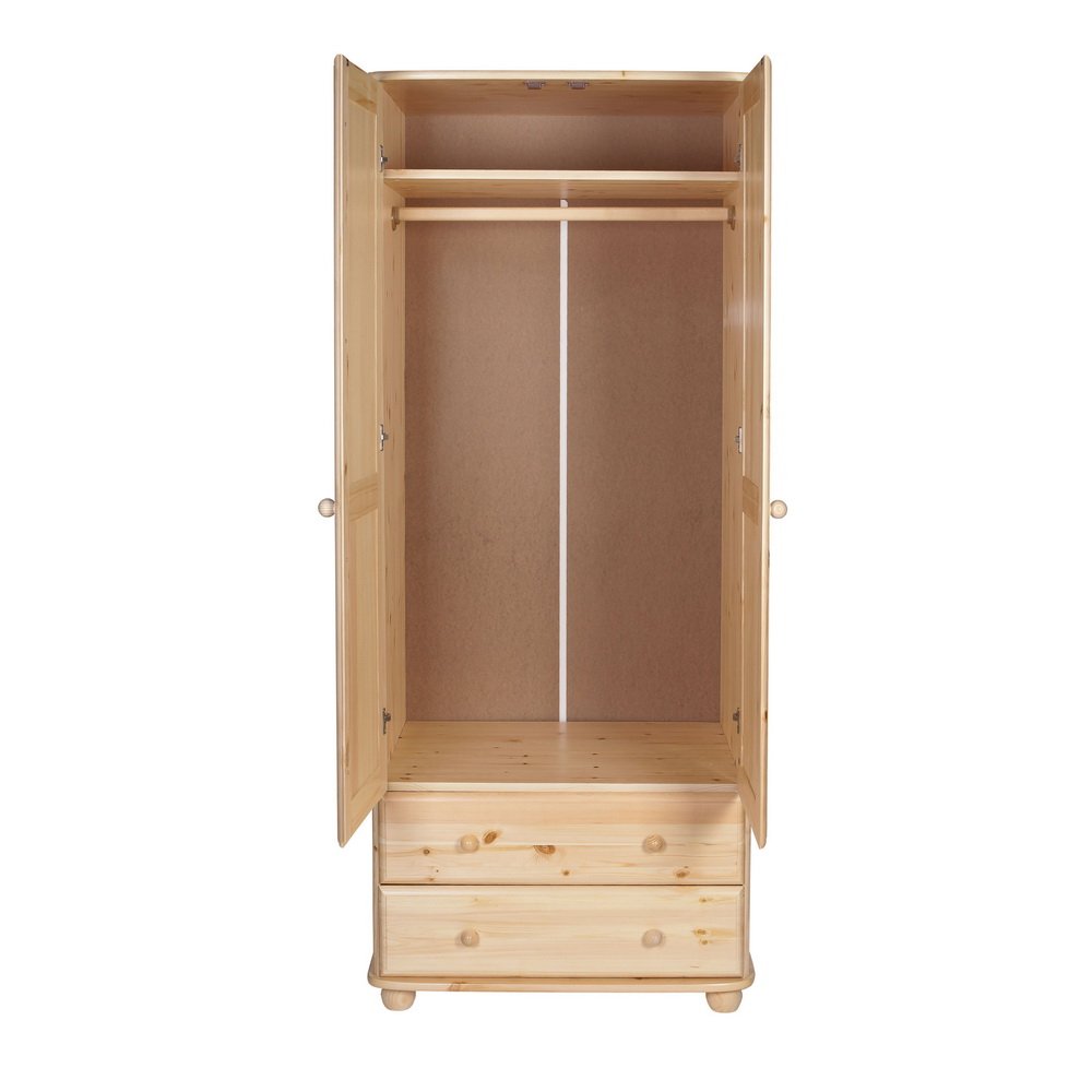 Шкаф стоит на круглых, крепких ножках, изготовленных так же из массива сосны. Высота от пола до дна 6 см. что обеспечивает возможность помыть пол под шкафом. Шкаф Норд-122 поставляется в разобранном виде, в двух упаковках. Размеры упаковок: 1 уп - 1840*80*590 2 уп - 850*110*590. Укомплектован всей необходимой фурнитурой для дальнейшего полноценного использования. Так же в комплект вложена инструкция по сборке изделия.