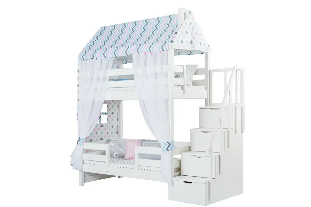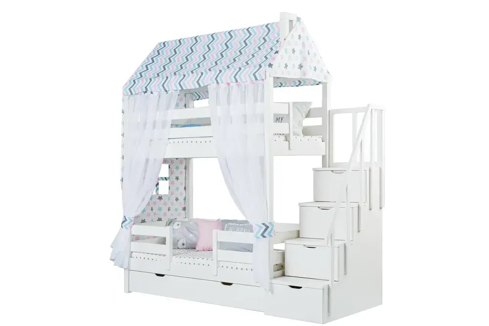 Представляем вашему вниманию уникальную кровать-домик, которая станет любимым местом для отдыха и развлечений вашего ребёнка. Эта модель выполнена из массива карельской сосны — экологически безопасного материала, который не только обеспечивает прочность конструкции, но и создаёт атмосферу тепла и уюта в детской комнате.