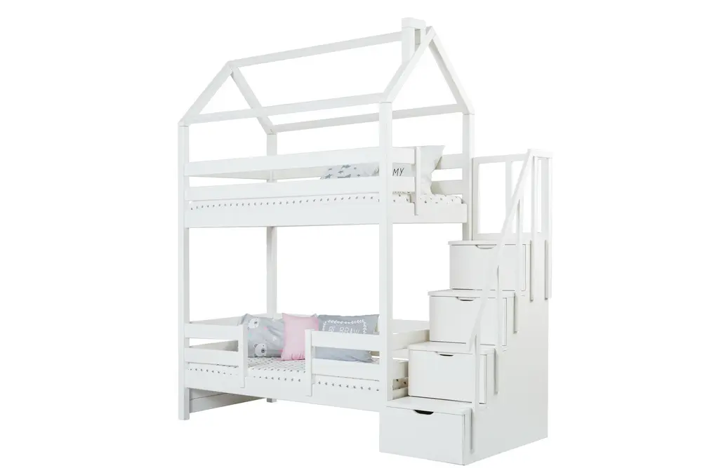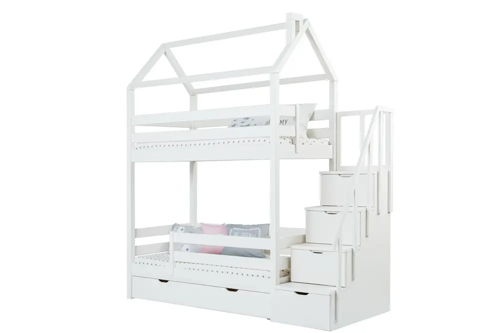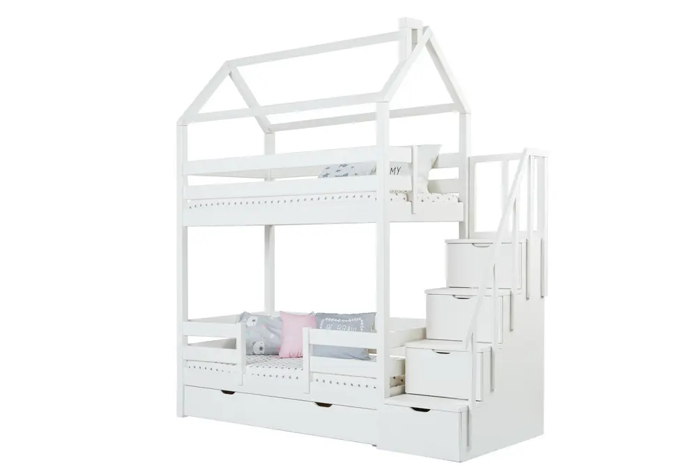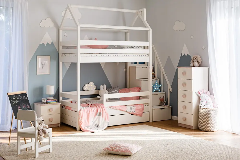 Мы предлагаем широкий выбор дизайнерских решений, которые позволят вам найти идеальную модель с учётом возраста, пола и предпочтений ребёнка. В нашем каталоге есть кровати-домики разной конструкции: одно- и двухъярусные, с двумя спальными местами или пространством для игр, которое можно оборудовать столиком, стульями, стеллажом. Вы также можете выбрать модель с «окнами» или без них, с лестницей-комодом или обычной приставной.