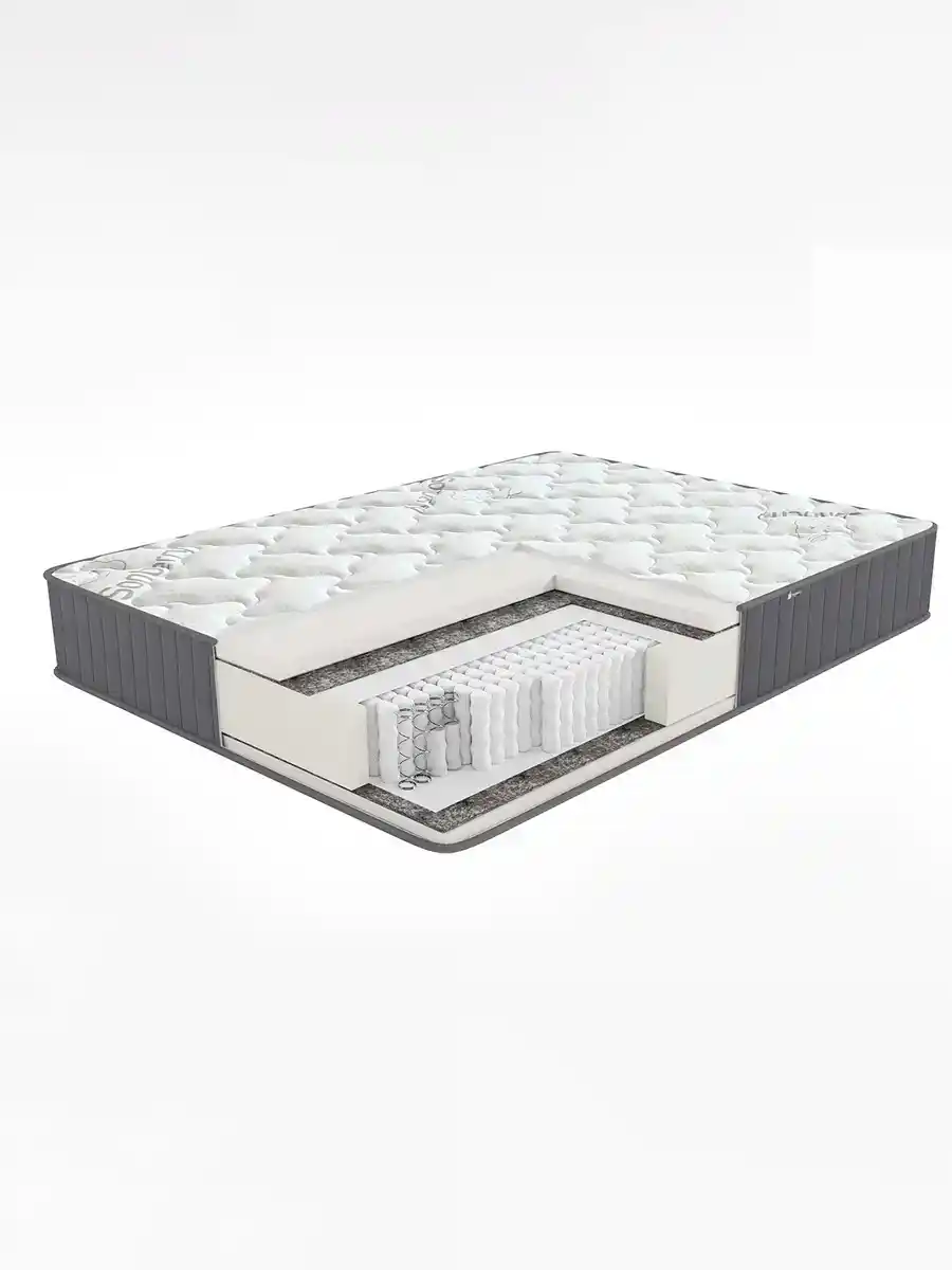 С каждой стороны пружинного блока находится сочетание изоляционного слоя и пены Orto Flex 20мм. Благодаря такому наполнению матрас обладает средней жесткостью, а сон будет комфортным и приятным.