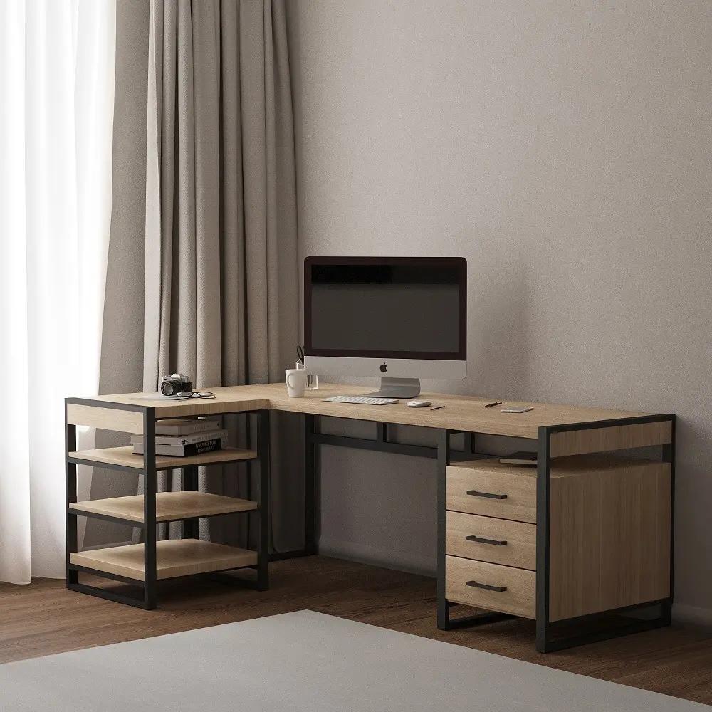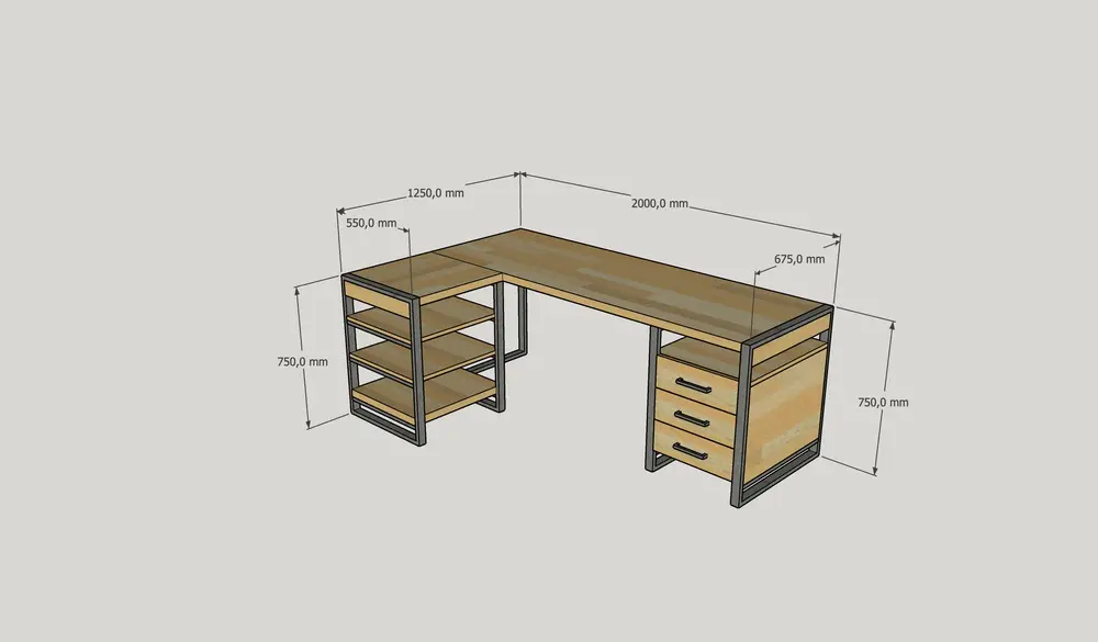 Стол рабочий 3 ящика. Письменный рабочий стол с тумбой и стеллажом в стиле ЛОФТ 07-01. Каркас выполнен из металлического профиля и окрашен в черный цвет. Столешница в стандартном исполнении выполнена из массива сосны. На заказ, возможно изготовление всех деревянных элементов-из массива ясеня, дуба или бука, покрытые маслом, бесцветным лаком или эмалями. А металлический каркас изделия может быть выкрашен в любой цвет по RAL. Подробности и более точную цену можно узнать у наших консультантов