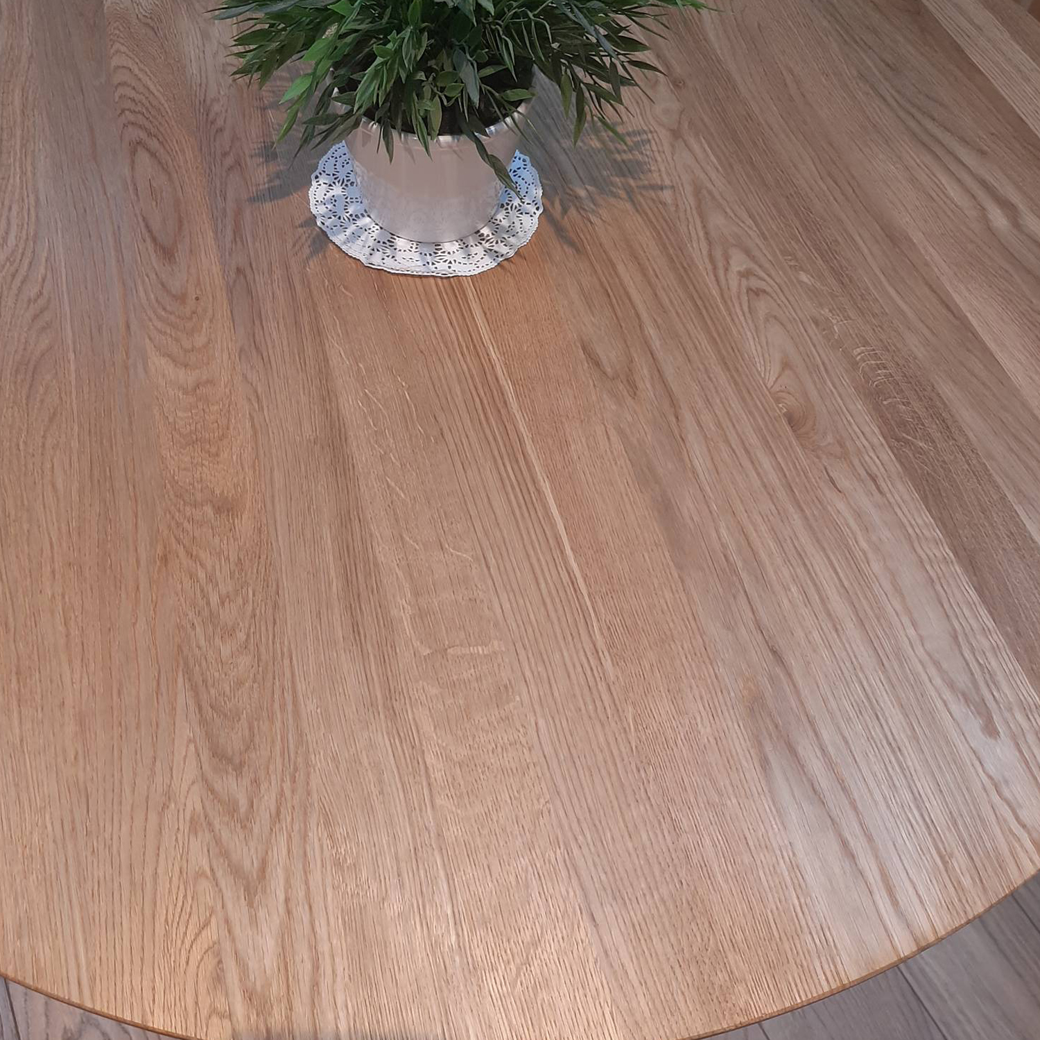 Обеденный стол «Раунд 3» изготавливается из долговечного природного материала – массива дуба. Стол отличается простым и стильным дизайном, а, главное, вместительностью – за ним могут разместиться 6-8 человек. Еще одно преимущество – устойчивые наклонные опоры.