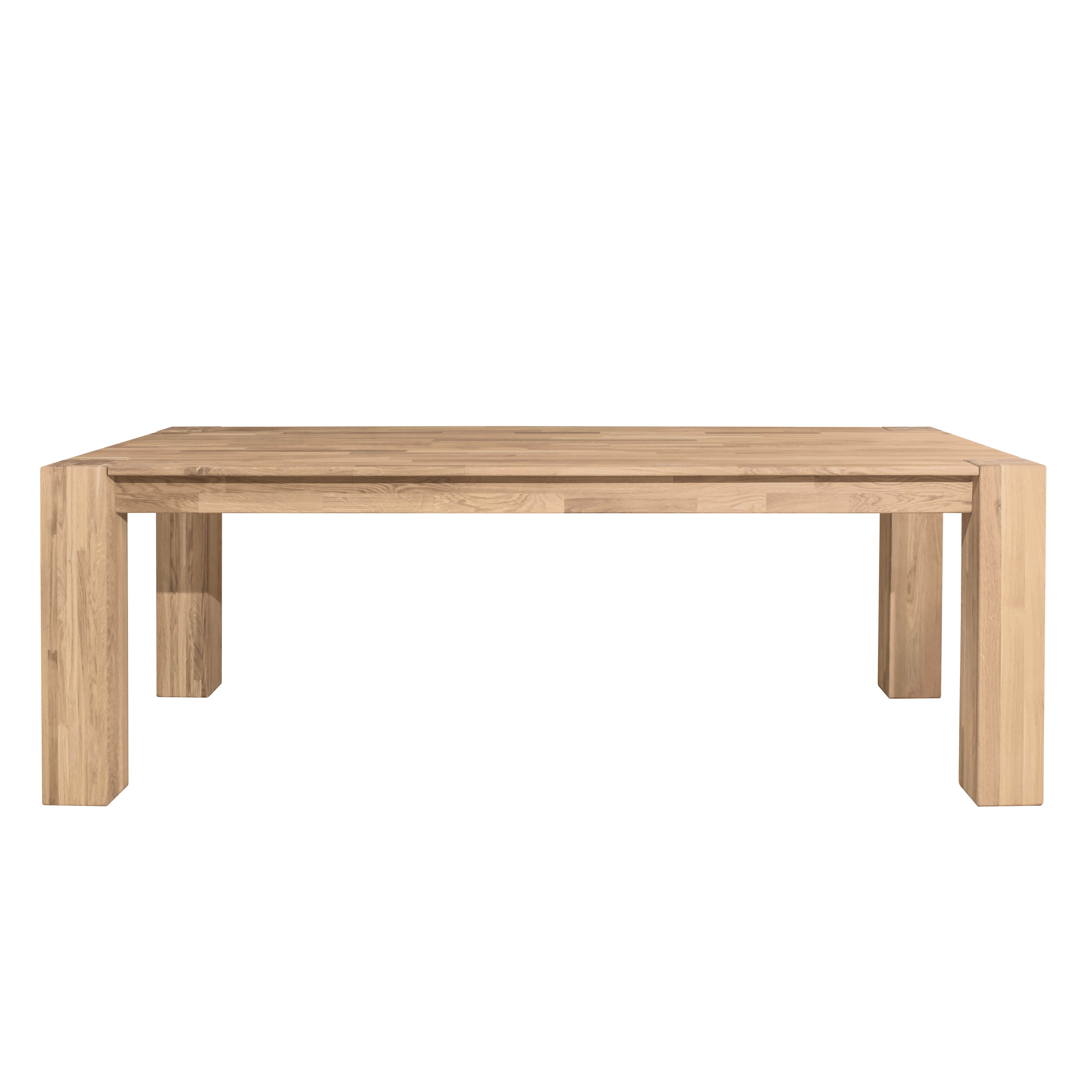 Стол изготовлен из натурального и долговечного материала – массива дуба, при этом сохраняется природная древесная текстура. Доступно шесть вариантов отделки: бейц-масло, дуб отбеленный, дуб паркетный, дуб венге, тёмная вишня и итальянский орех. Вы можете выбрать тот вариант, который лучше всего подойдёт к вашему интерьеру. Столик имеет устойчивые массивные ножки 150х150 мм.