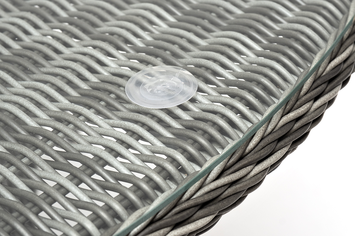 Стол садовый из искусственного ротанга "Эспреззо" прекрасно вписывается на летнюю веранду. Высота модели 75 см, а диаметр поверхности составляет 150 см. В качестве основания выступает каркас, выполненный из алюминия и оплетён круглым искусственным ротангом графитового цвета. Рабочую плоскость покрывает 5 мм столешница из ударопрочного закаленного стекла.