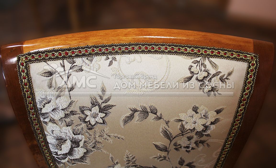 На спинке стула гармонично сочетается набивная ткань с элегантной отделкой. Это придаёт стулу изысканный вид и делает его ещё более привлекательным.
